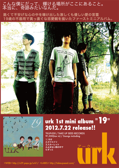 2012年、待望のミニアルバム発売を機に、活動を仙台から東北・関東へと広げ、初のツアー決定!静と動のコントラストに彩られた優しい唄と、19歳の不器用で真っ直ぐな恋愛観を描いた言葉の数々が、ゆっくりと心の琴線に浸透中。次世代のバン