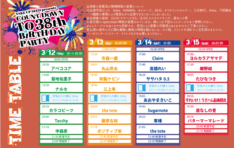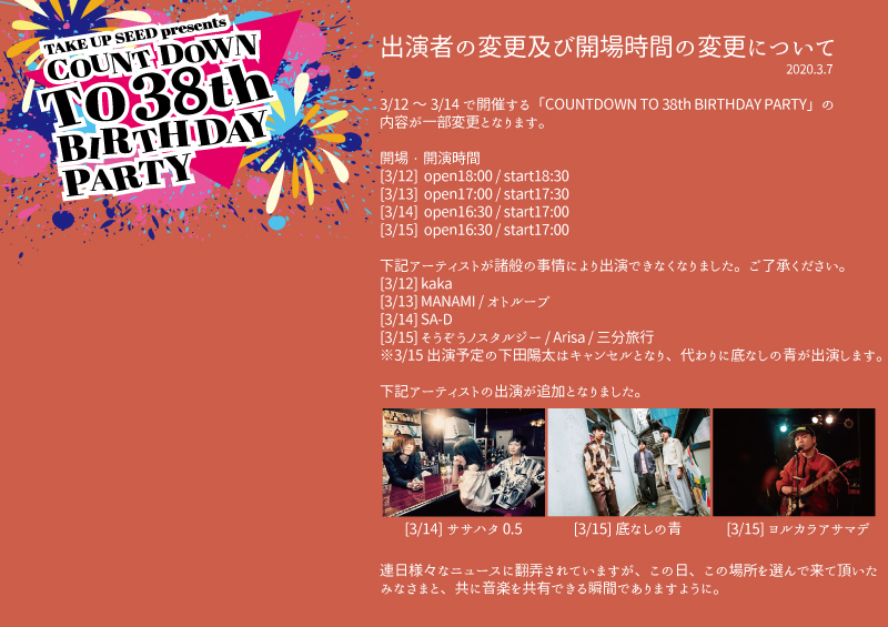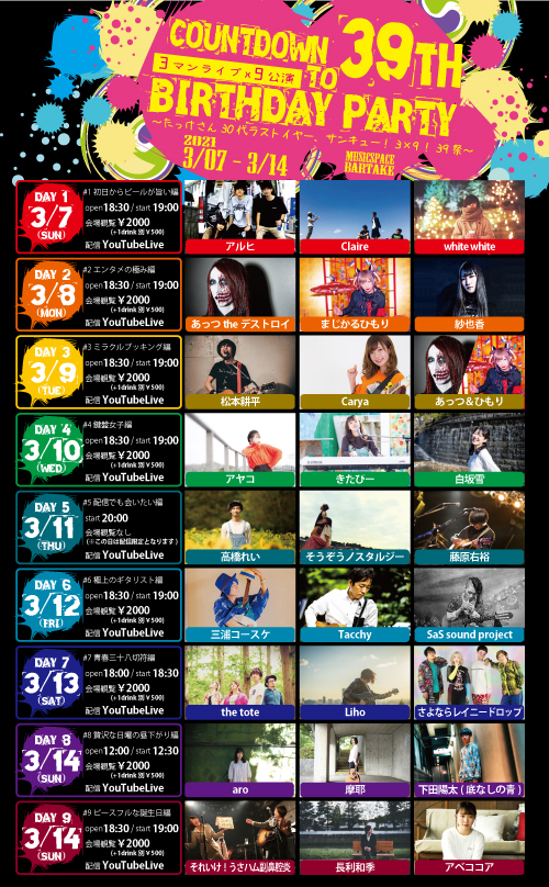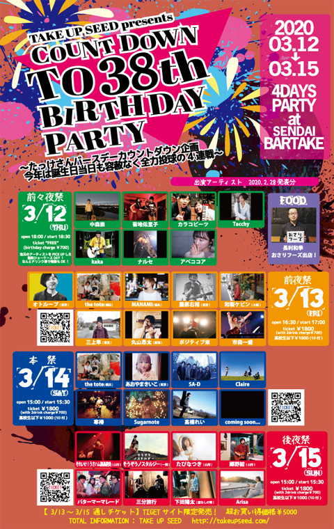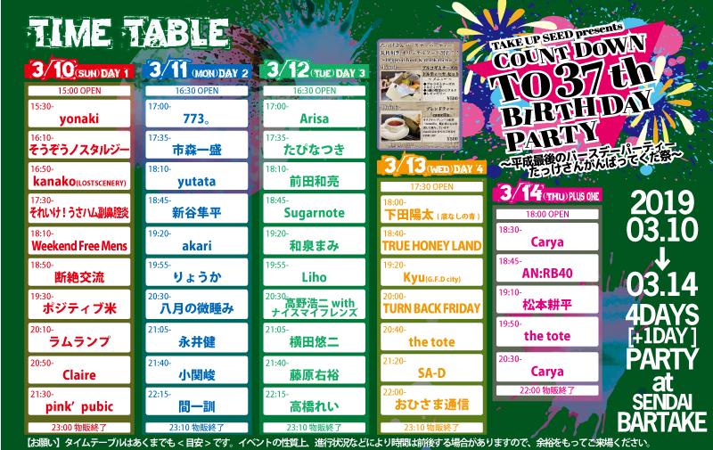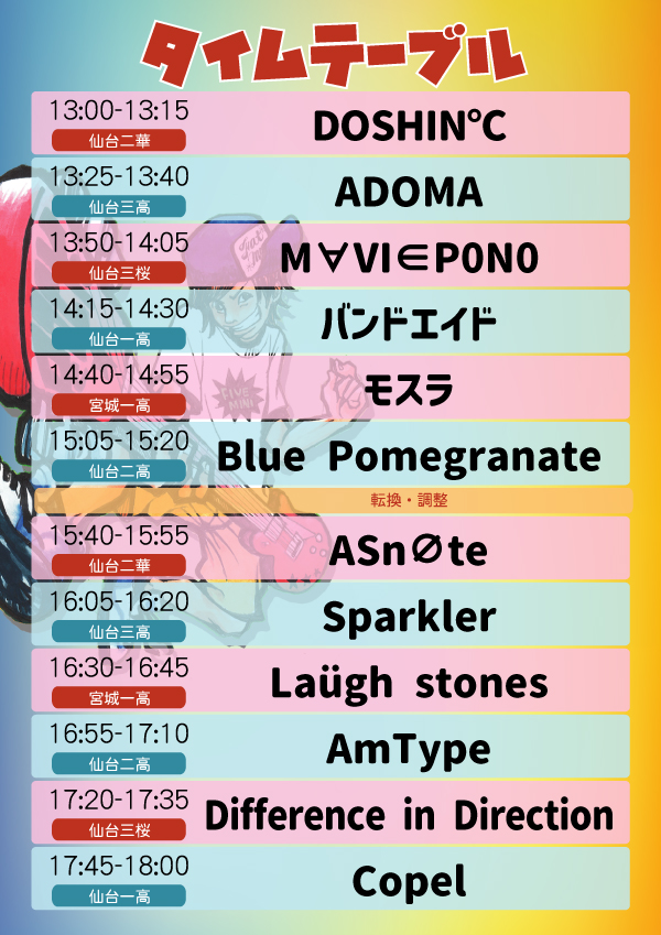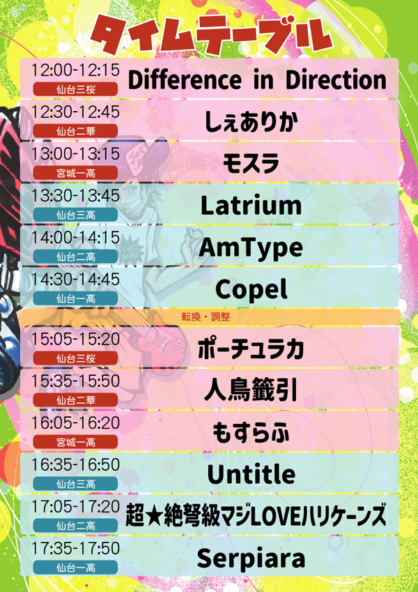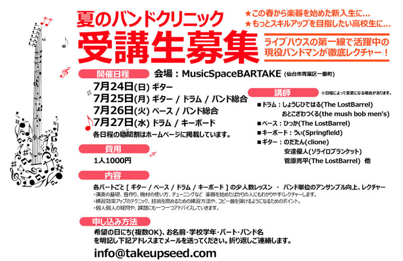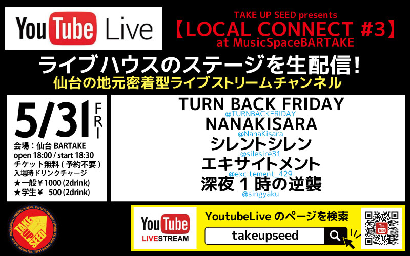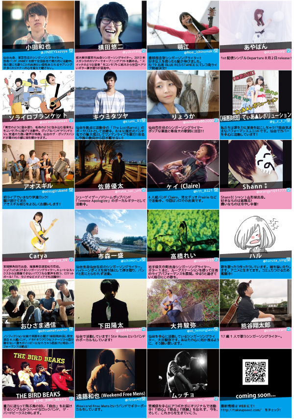 今年も、地元仙台のバンドシーンを代表するに相応しいラインナップでお届け!