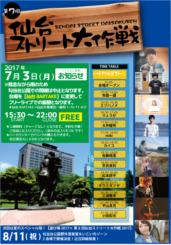 合同路上ライブ「仙台ストリート大作戦2017」 <第6回>開催決定