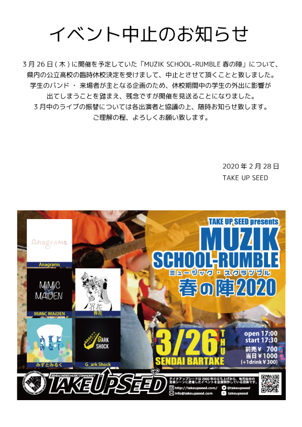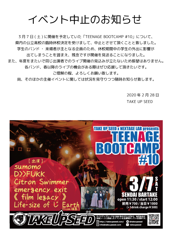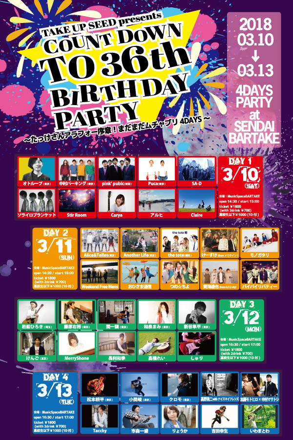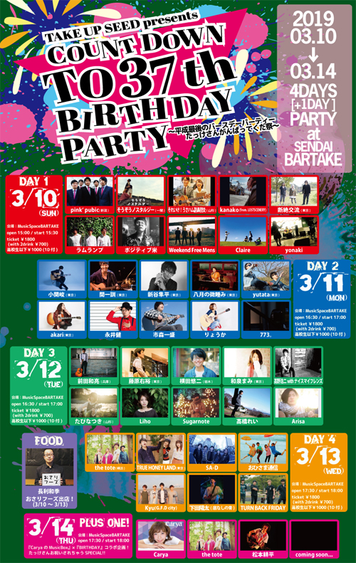 主催・企画制作:TAKE UP SEED / 助成:(公財)仙台市民文化事業団