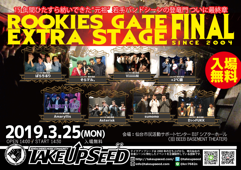 2015年度のROOKIES GATEシリーズ最終回。この日までの最多得票バンドが、3月に開催される「EXTRA STAGE」に進出できます。最後のエントリーチャンス!
